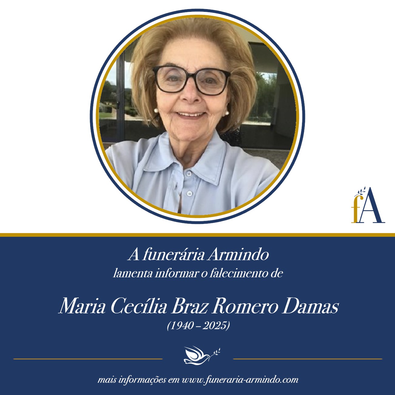 Lamentamos informar o falecimento de Maria Cecília Braz Romero Damas.