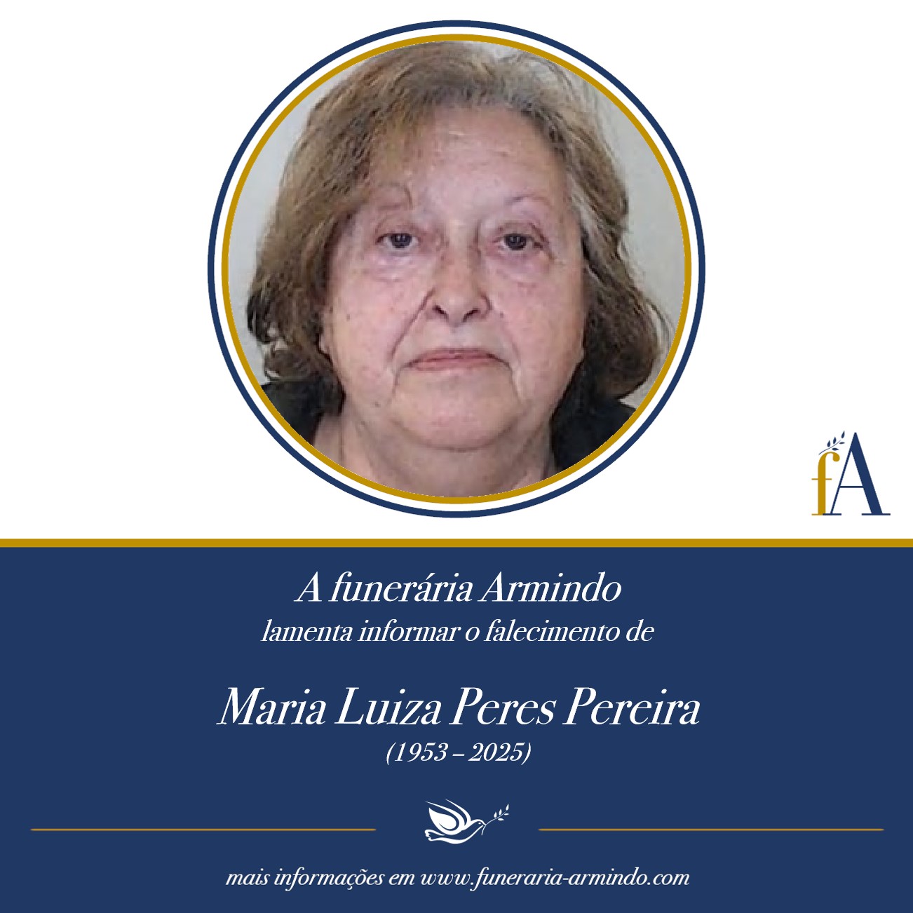 Lamentamos informar o falecimento de Maria Luiza Peres Pereira.